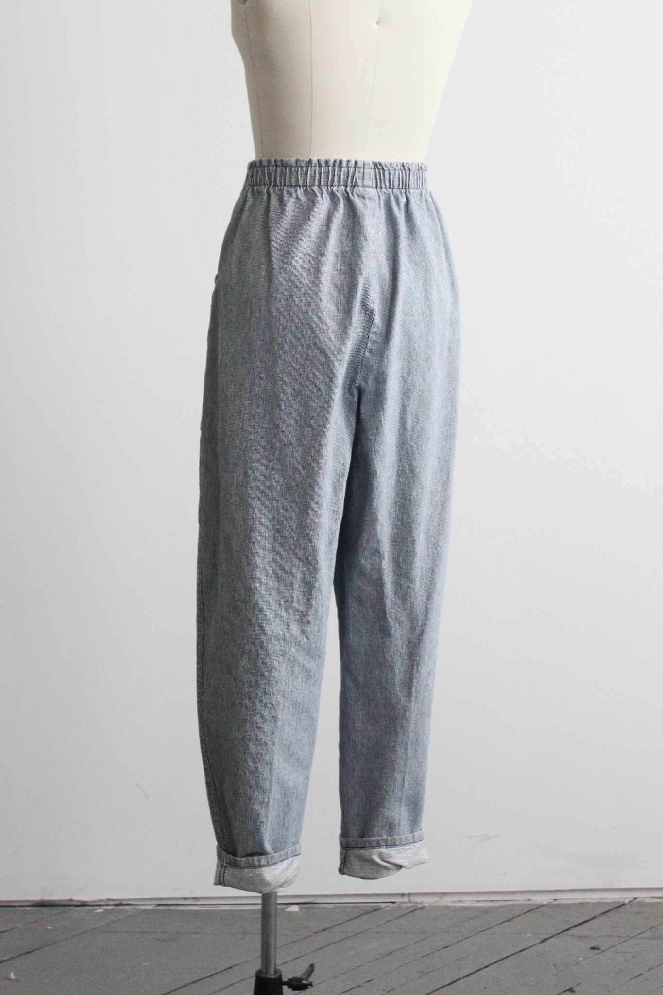 features: elastic waistline / zip and button fly / patch pockets at the hip