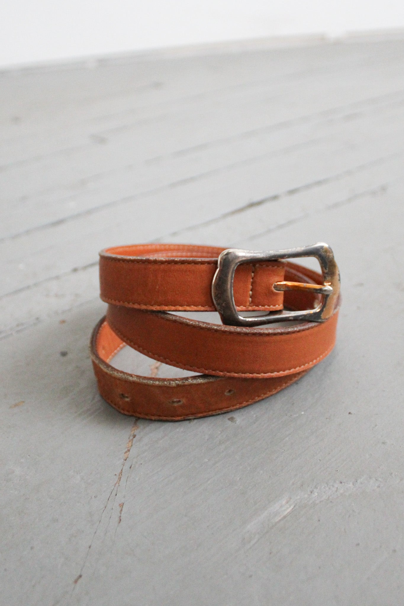 era: 1990ssize on tag: 34label: gapmaterial: leather & brasslength: 39.5" including bucklesizing: holes punched to fit 31" to 35" waists
