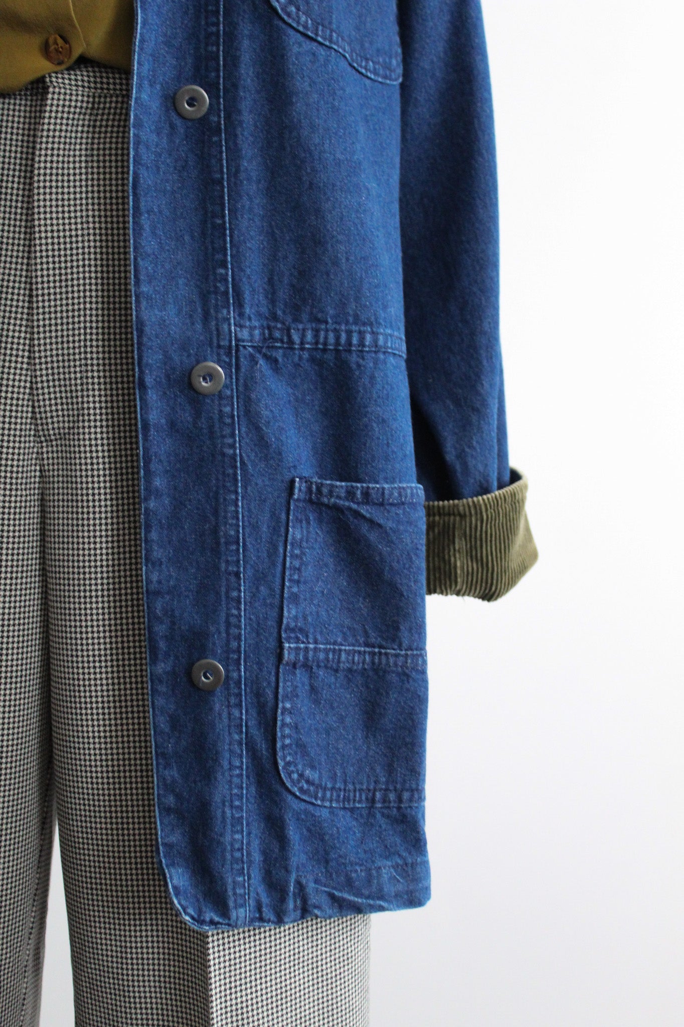features of note: button up front / corduroy cuffs and collar / pockets at the hip
