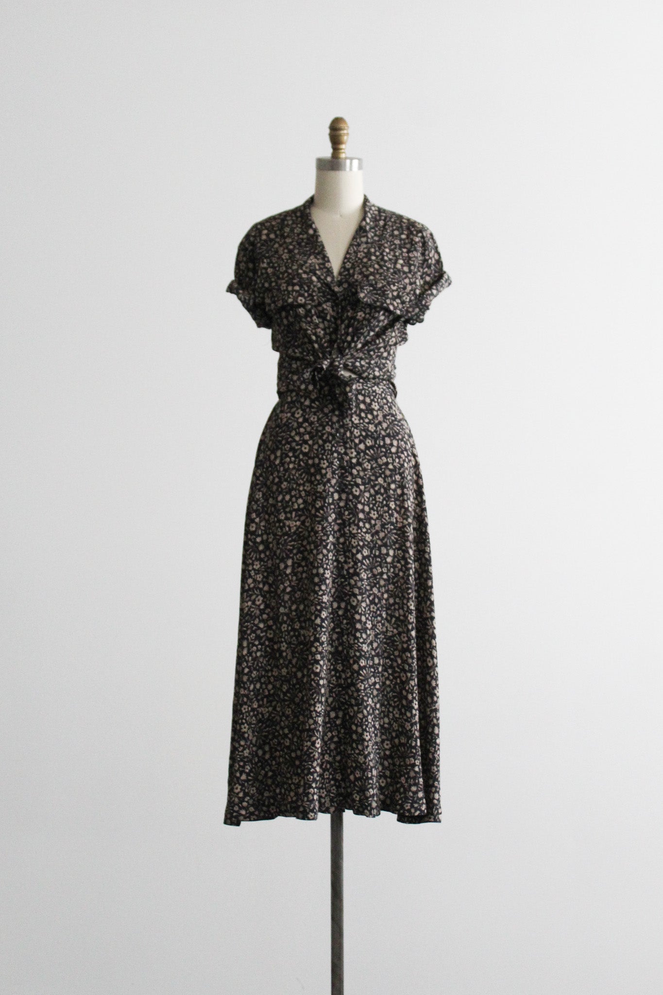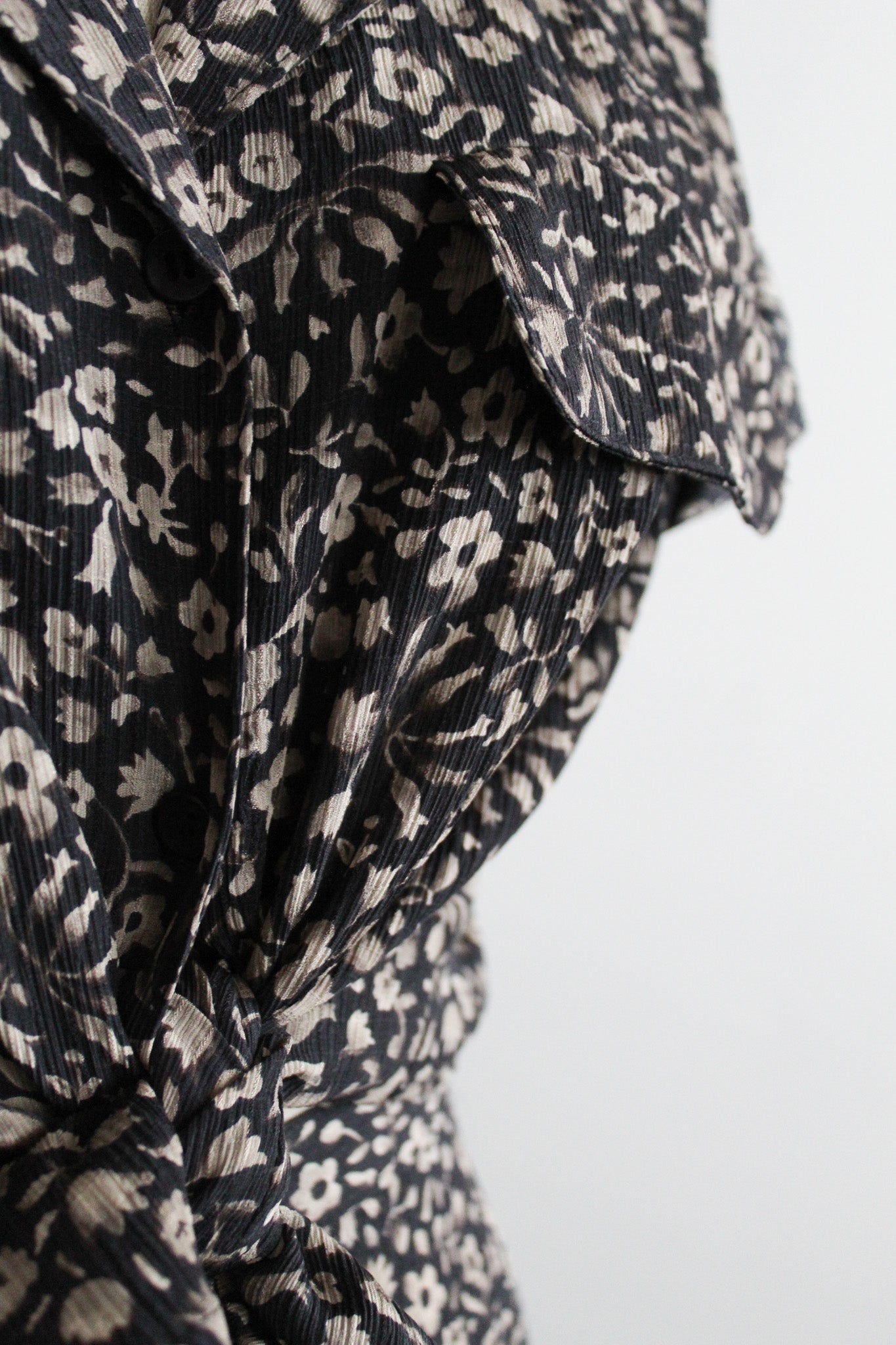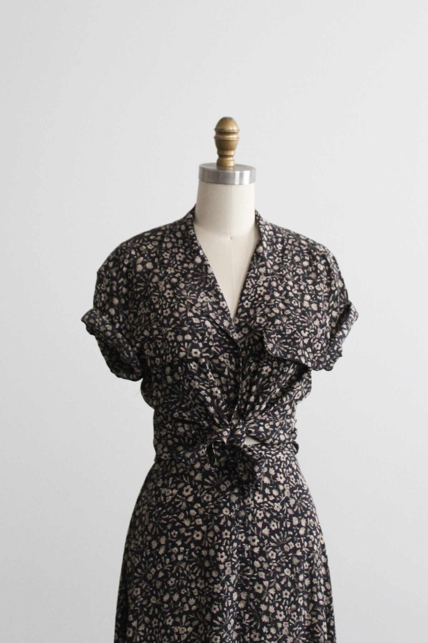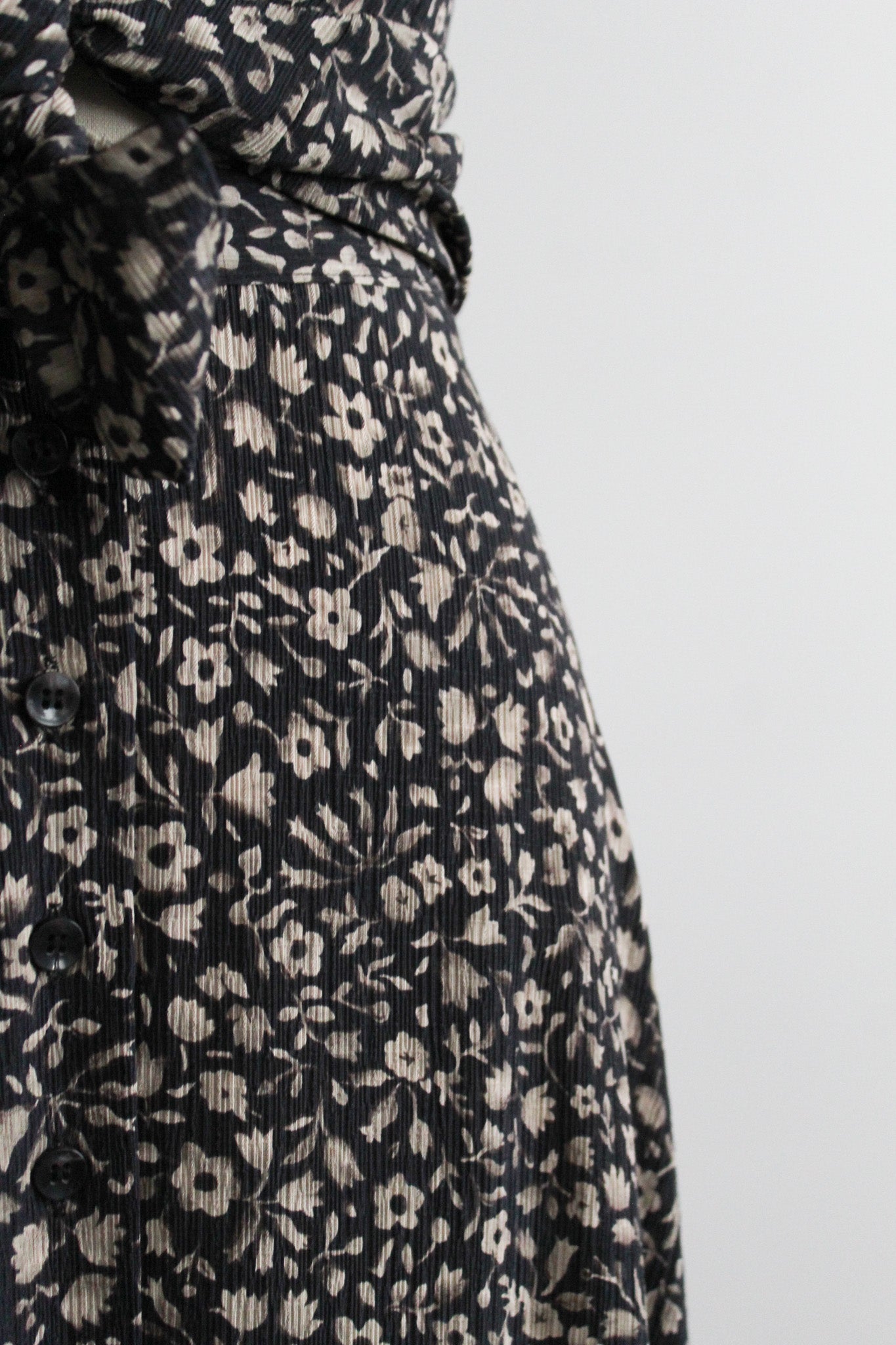 features of note: buttons all the way up the front of the blouse & the skirt / made of a soft and lightweight silk
