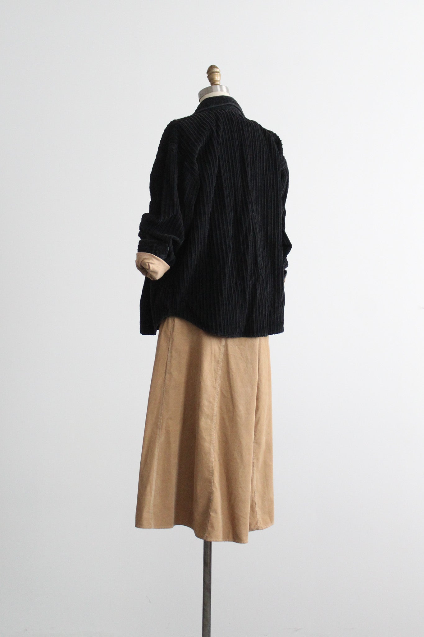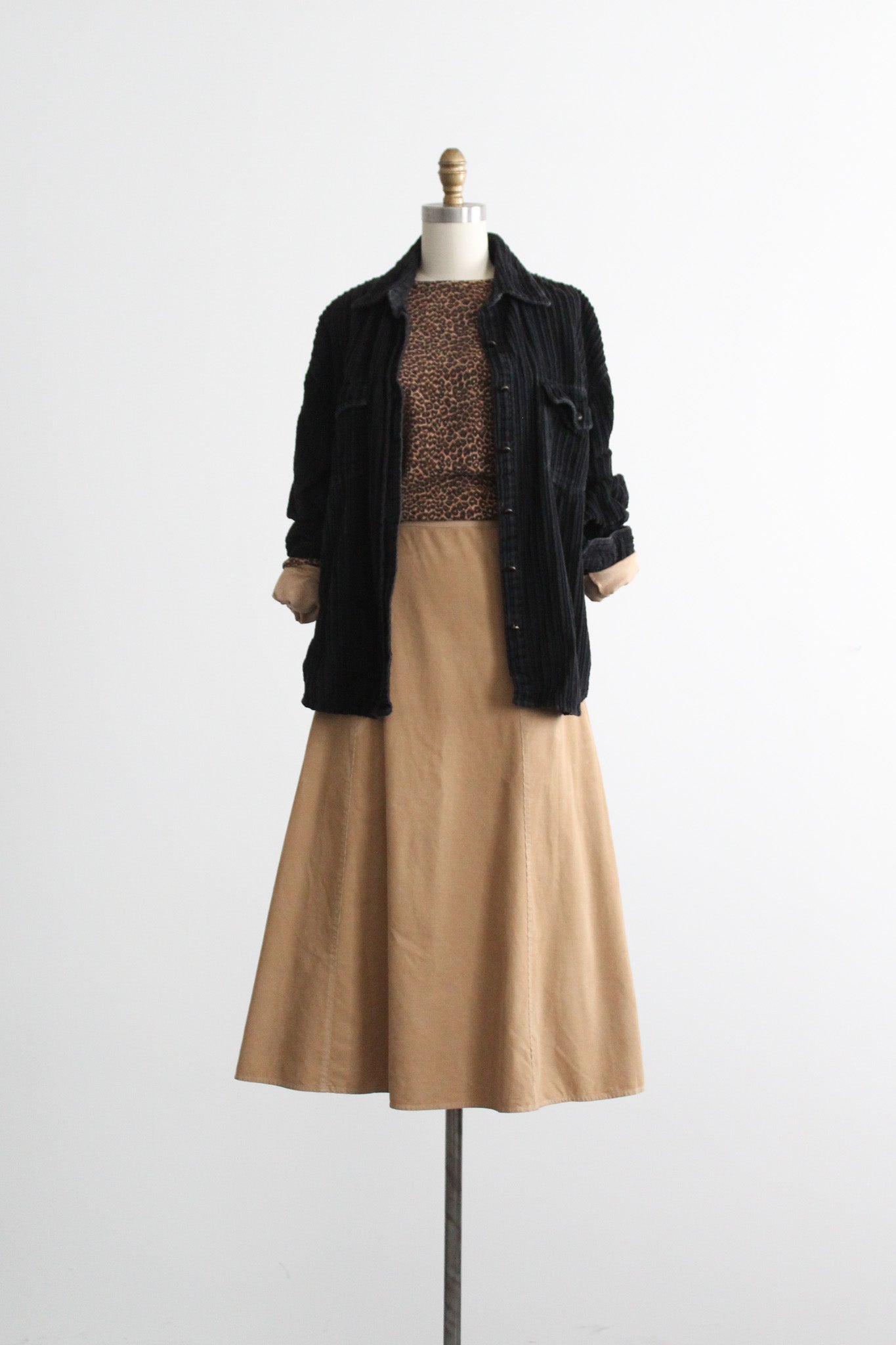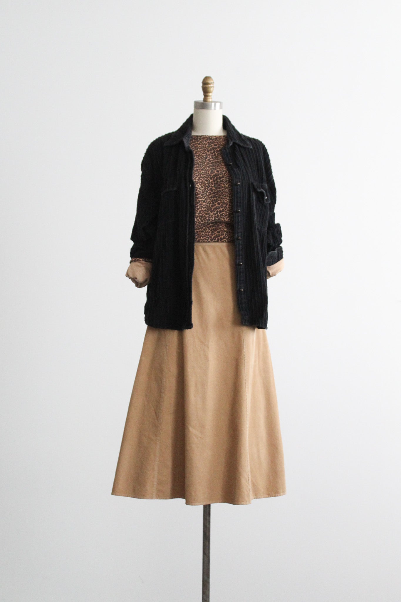 features of note: flared shape / zip and button closure