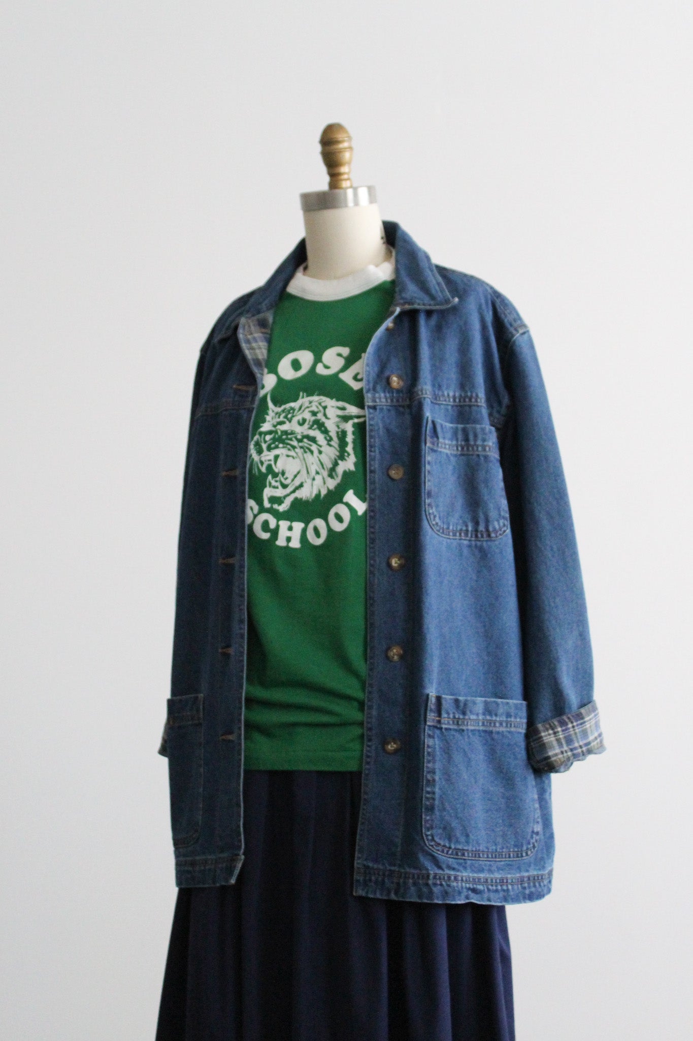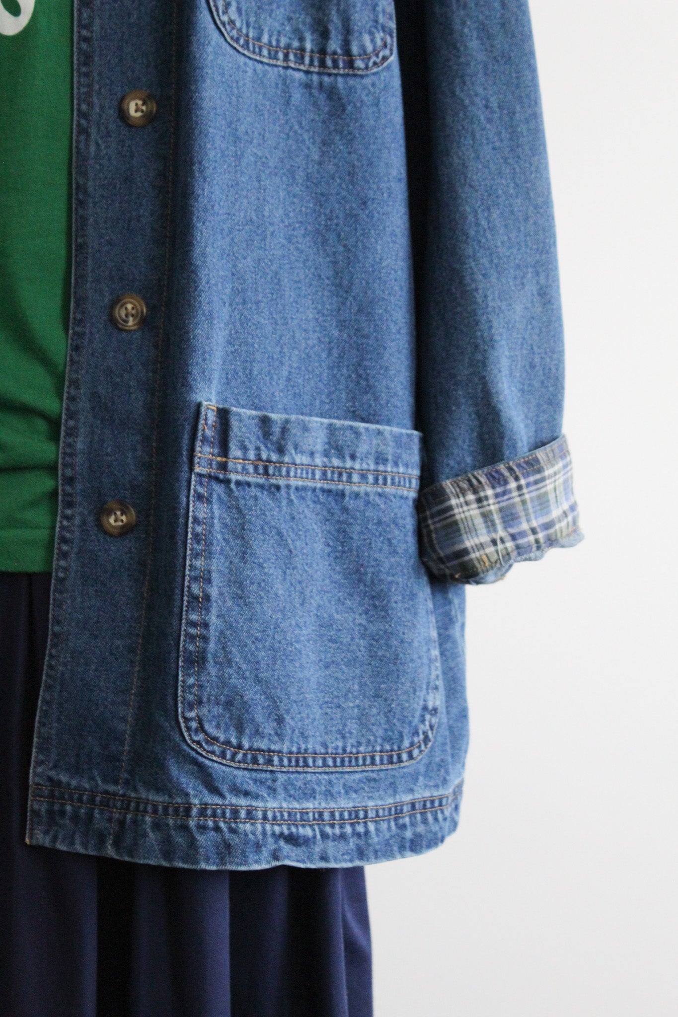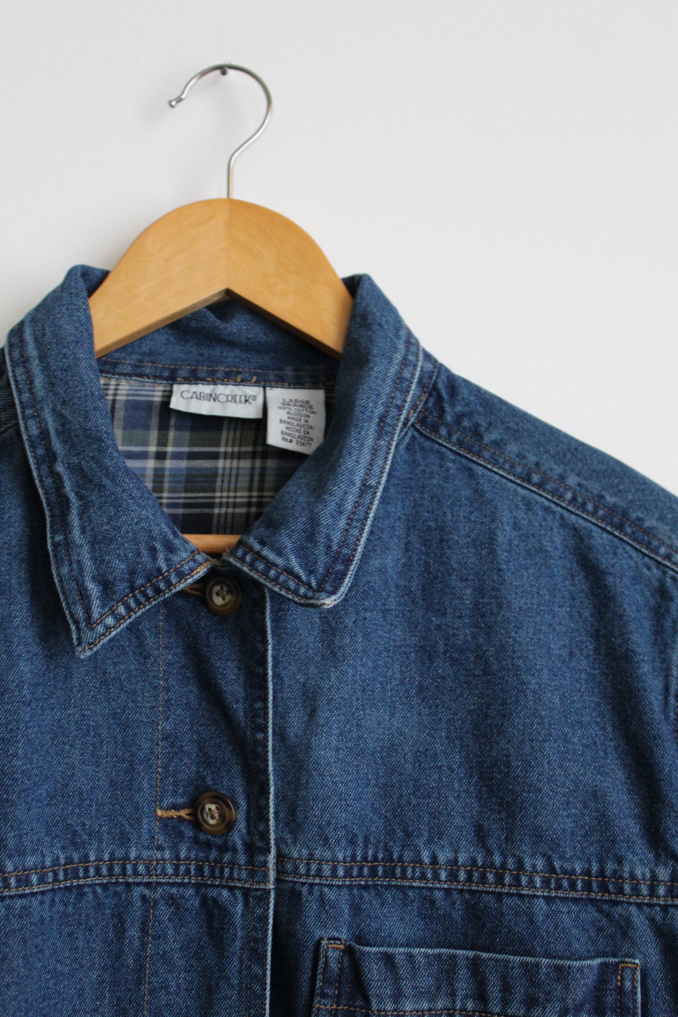features of note: buttons up the front / pockets at the hip / interior is partially trimmed in plaid cotton flannel