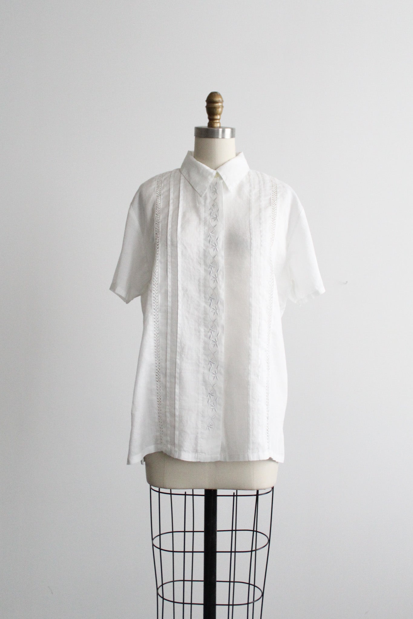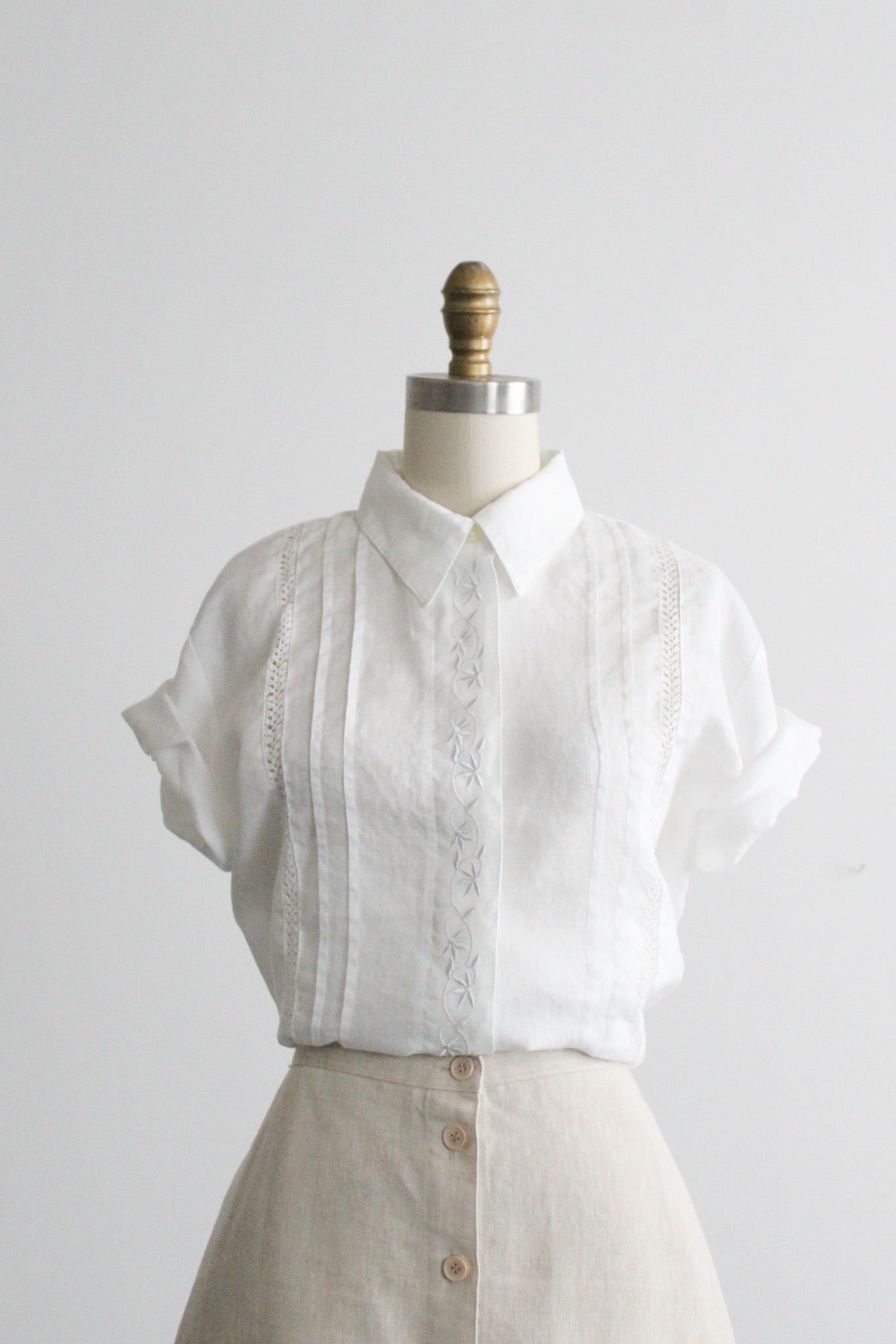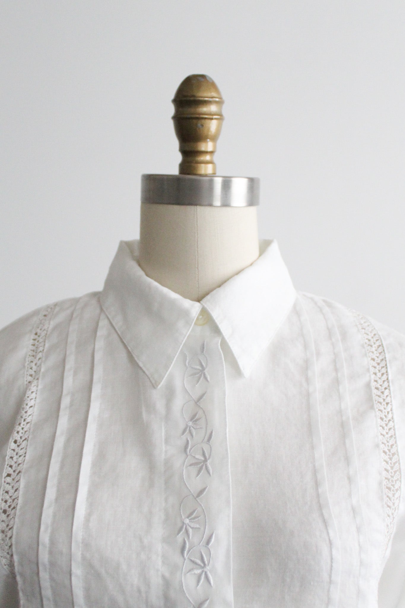 features of note: cutout lace trim & embroidery throughout