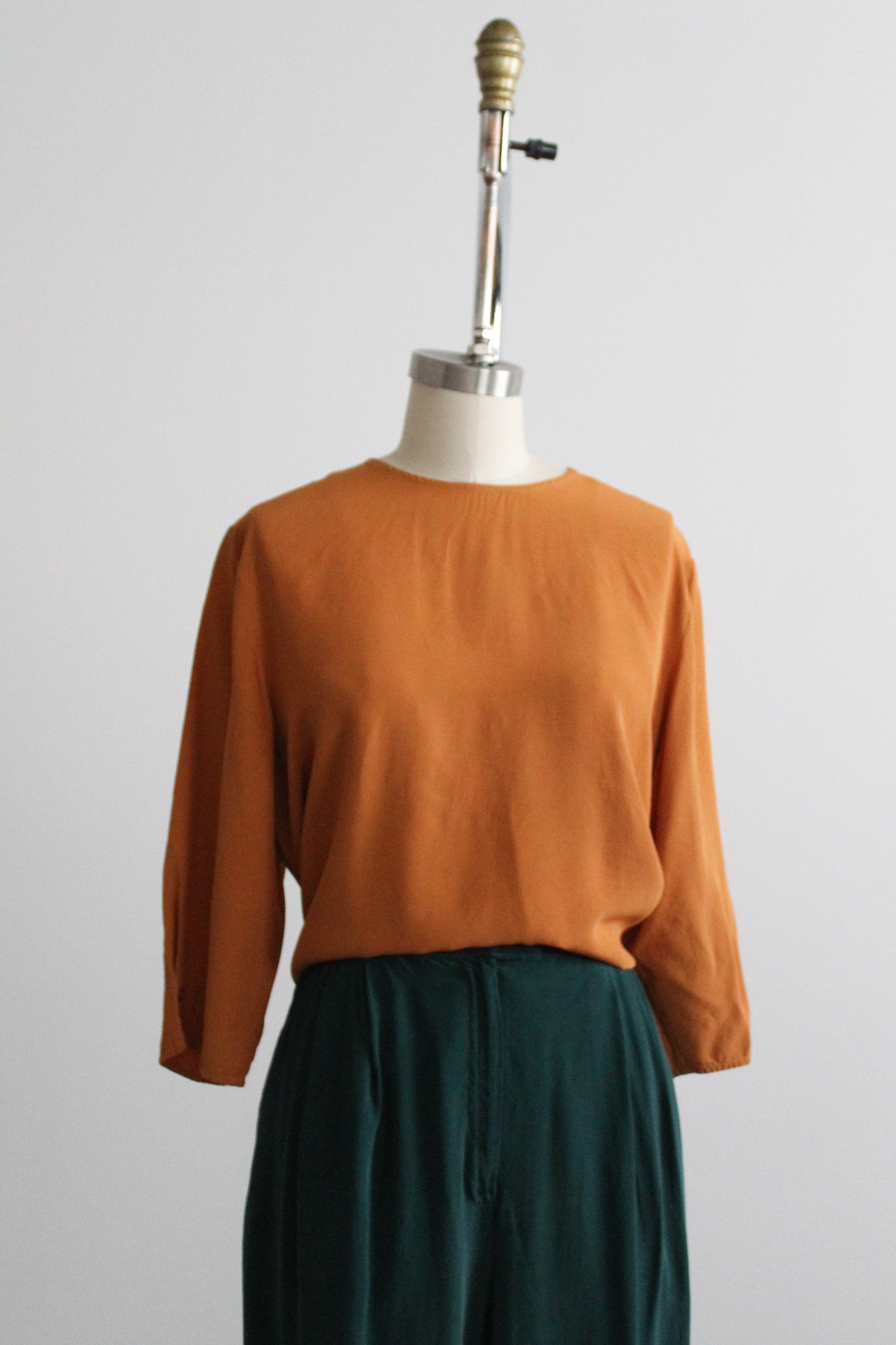 features of note: cropped sleeves / single button at the back of the neckline