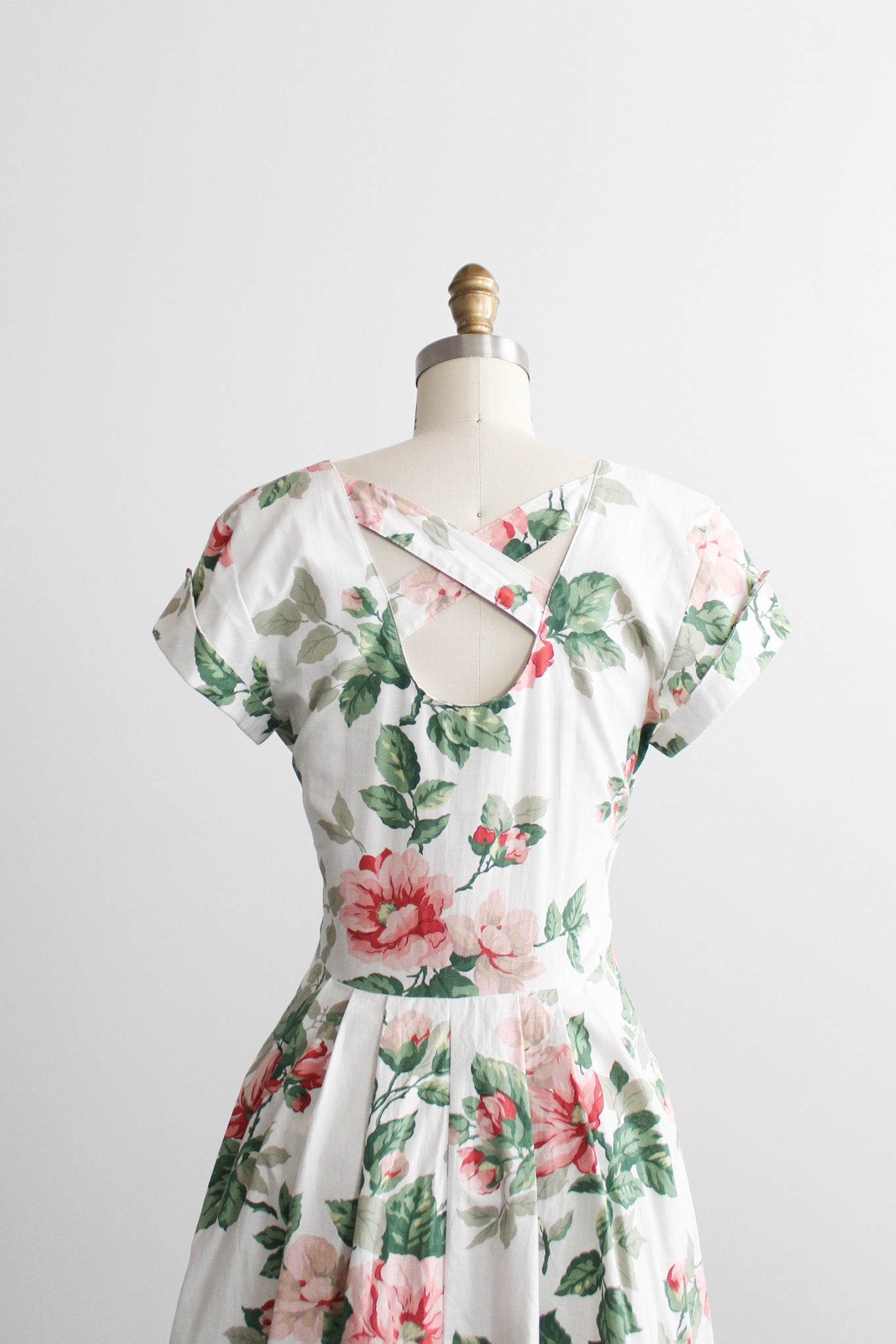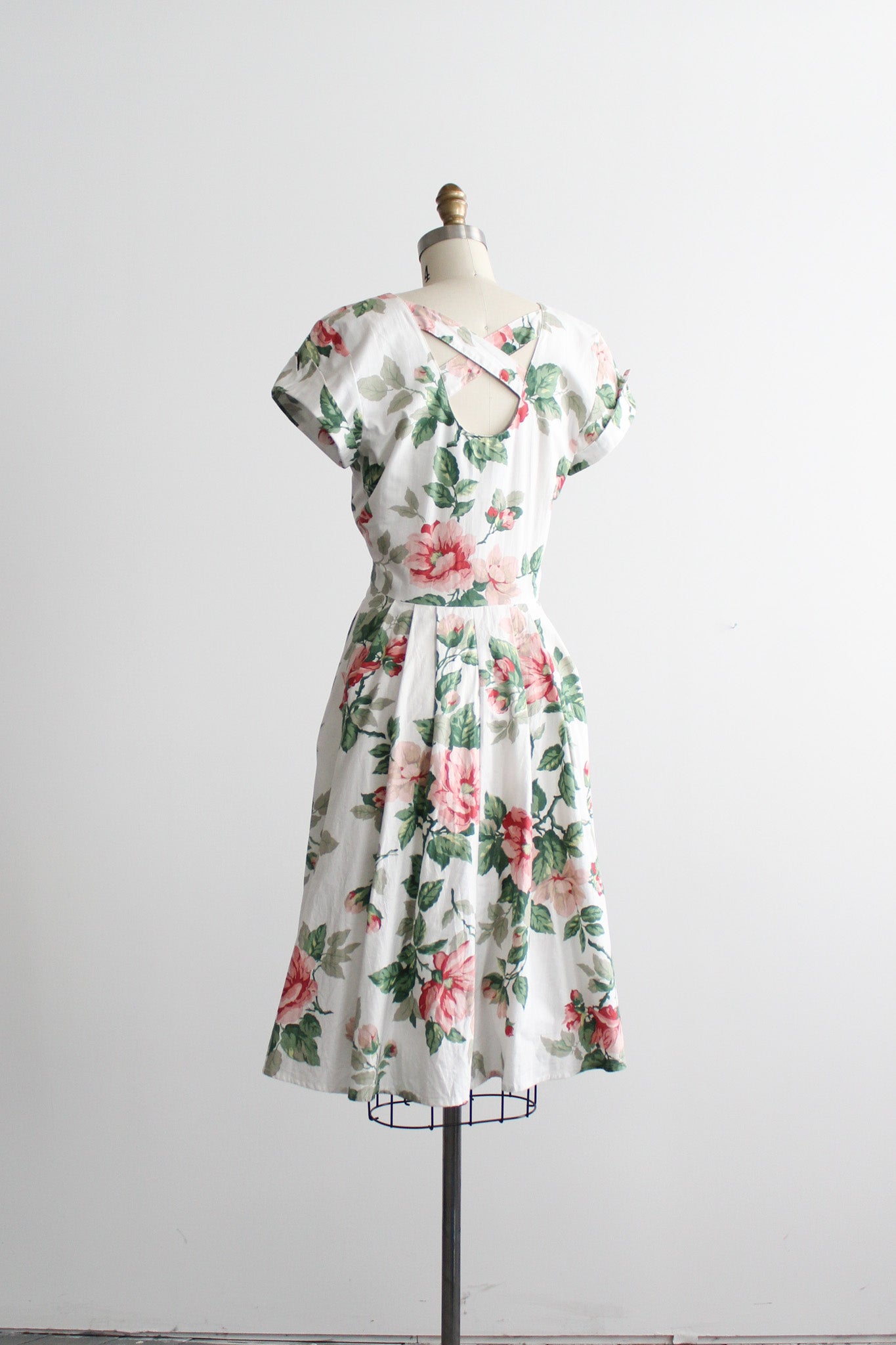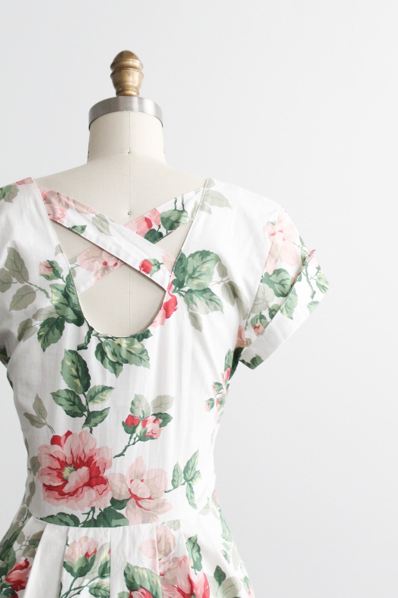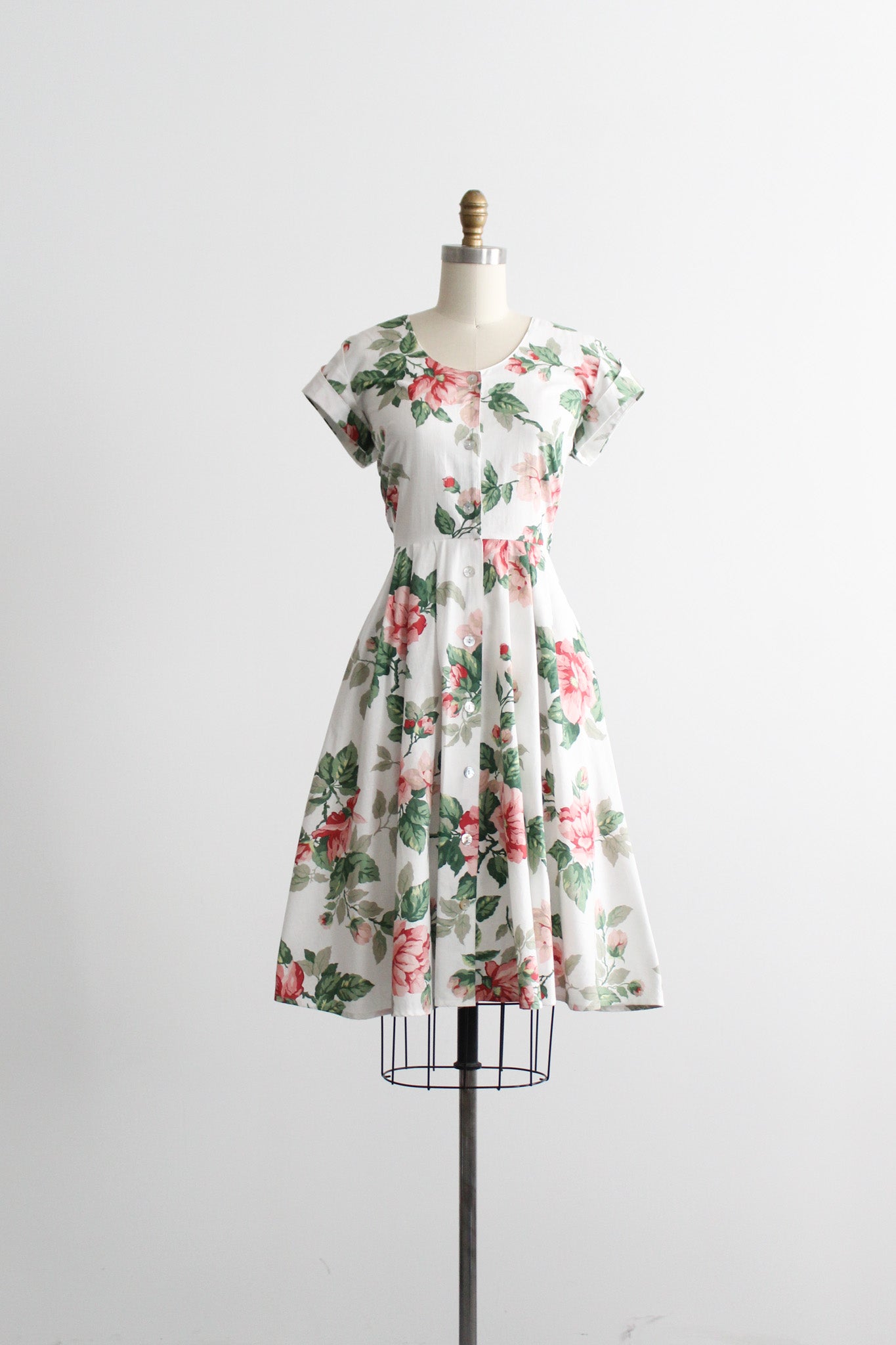 features of note: mother of pearl buttons all the way up the front / lattice-back detailing / flared skirt
