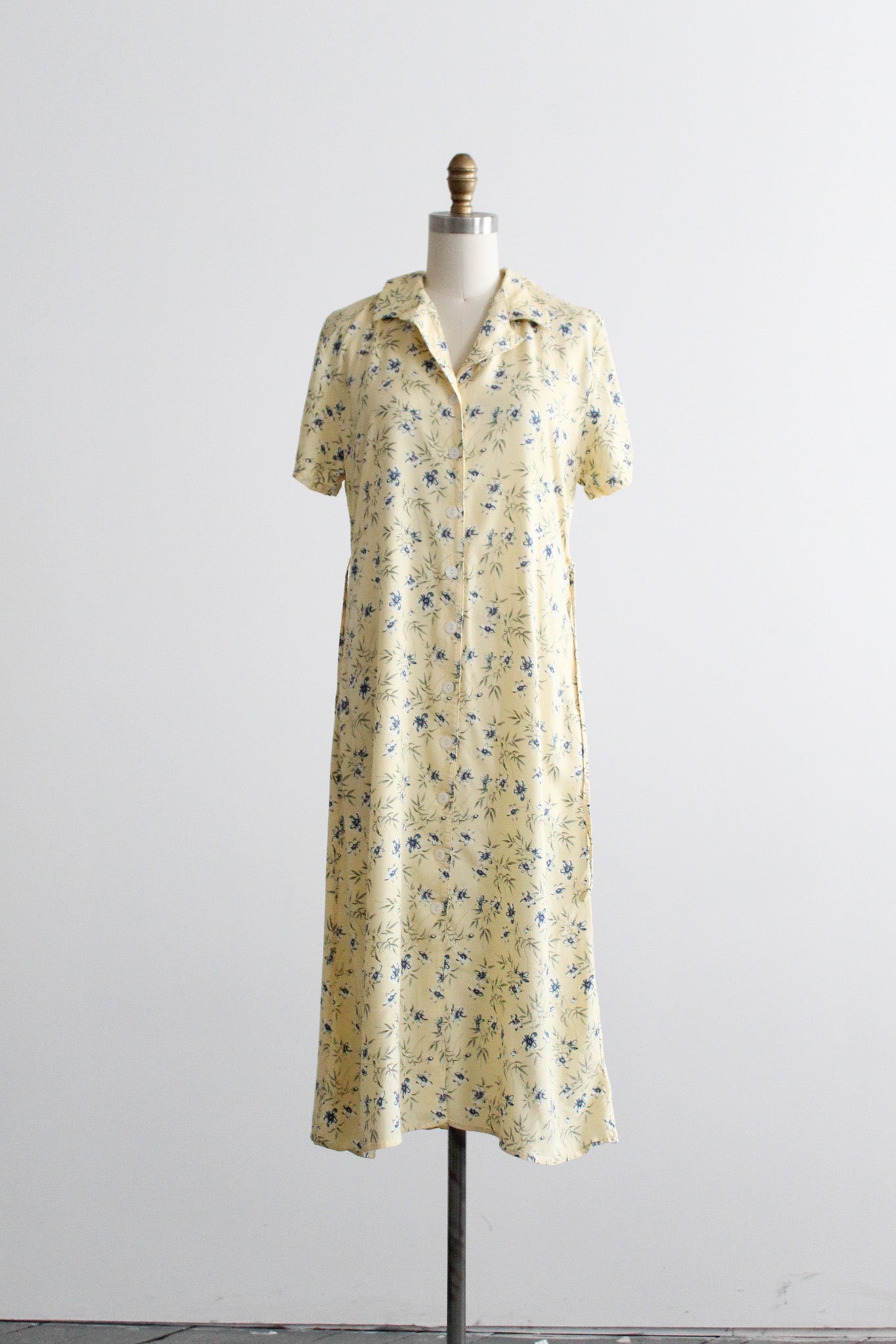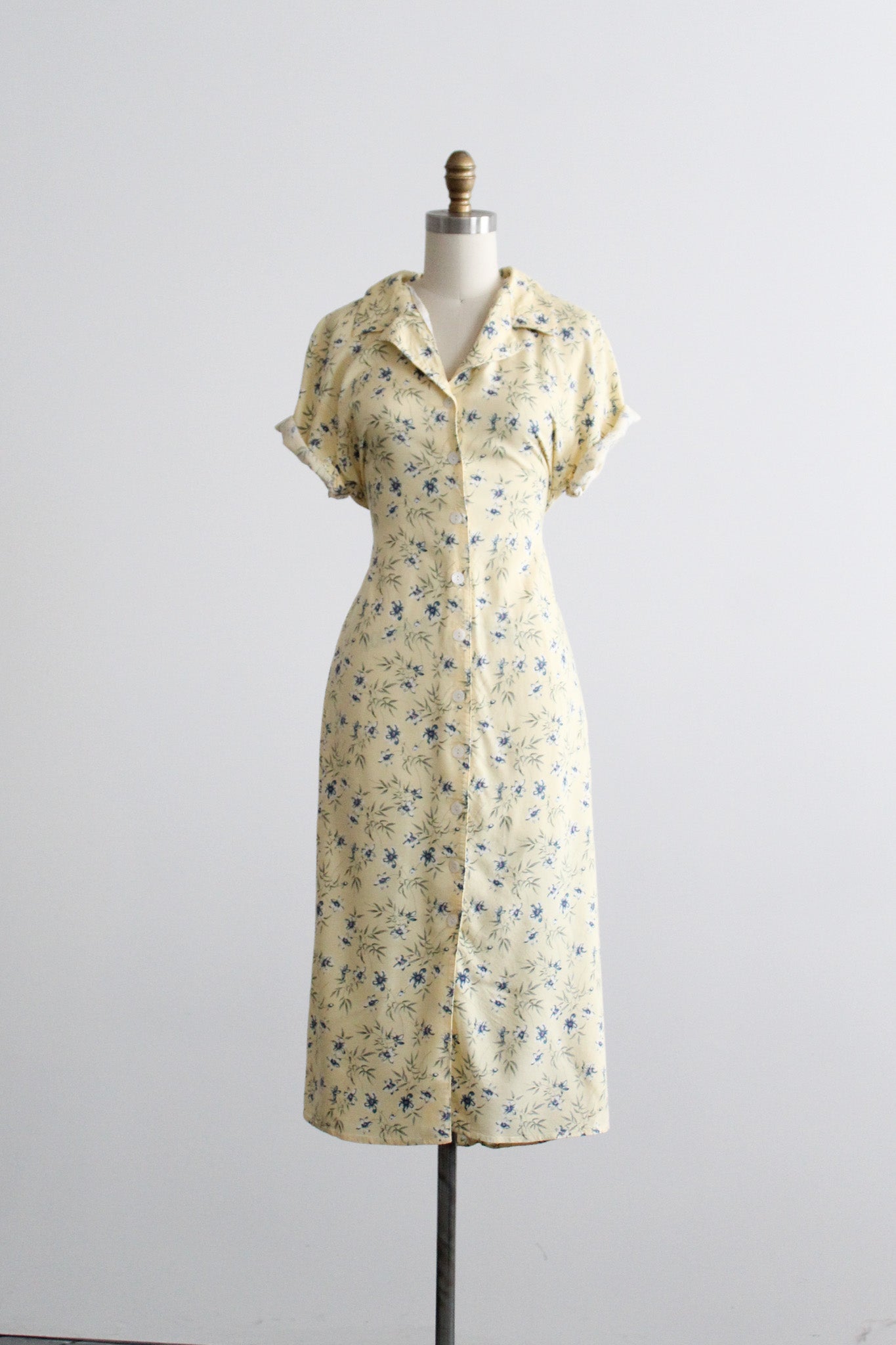 features of note: buttons all the way up the front / tiebacks at the back of the waistline