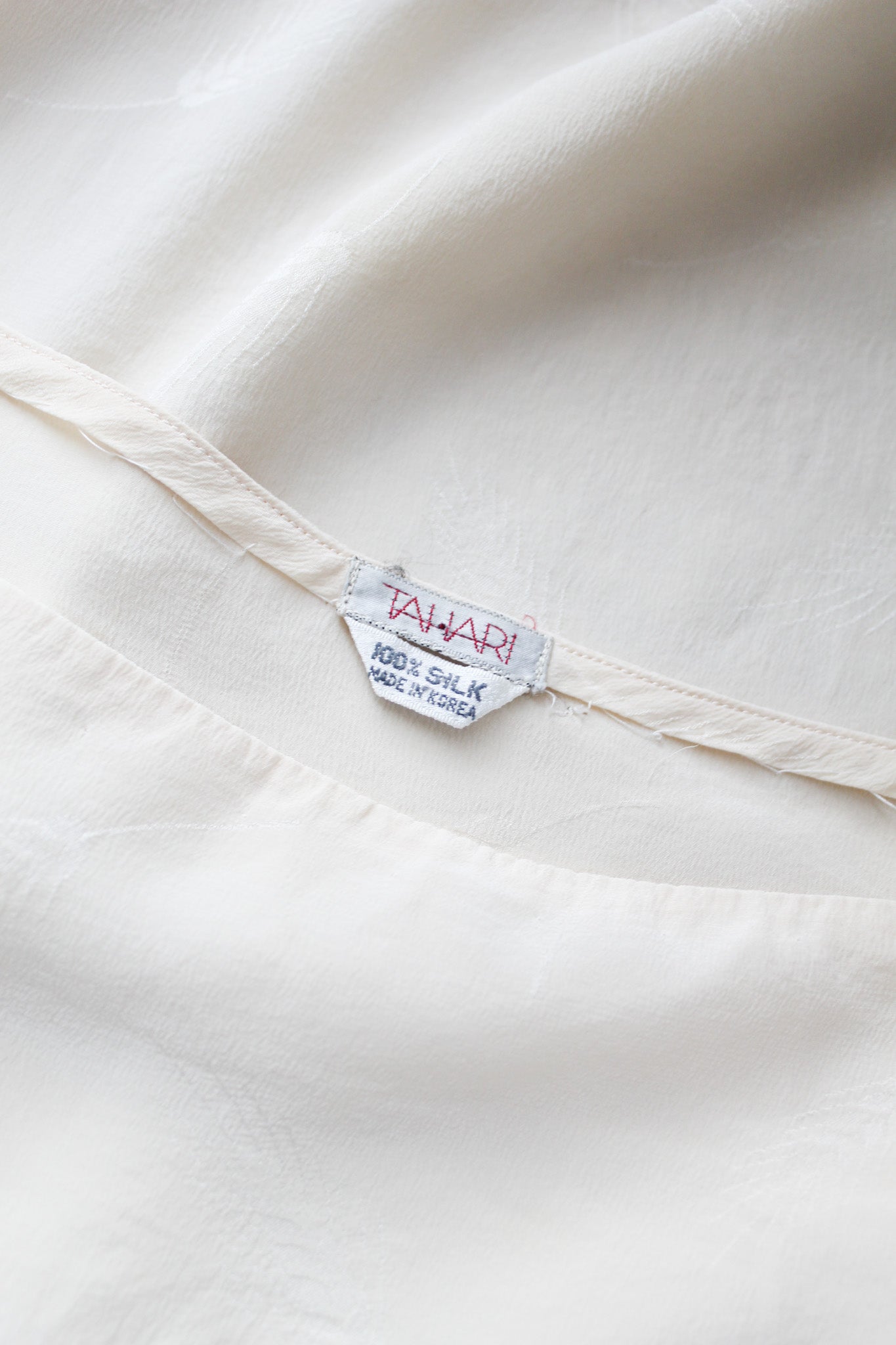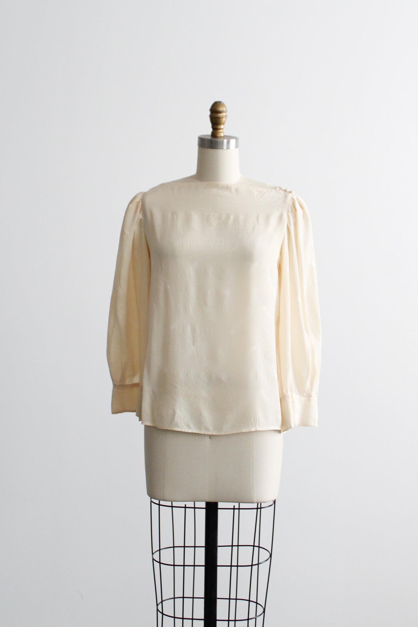 condition: very good with some wear (slightly mismatched button at the neckline & some faint tea colored blemishes)