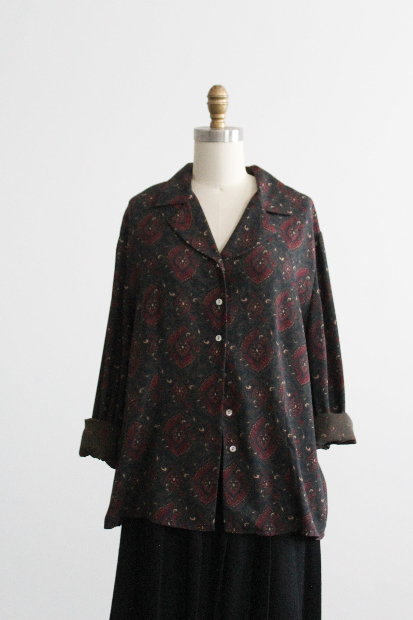 features of note: mother of pearl buttons all the way up the front