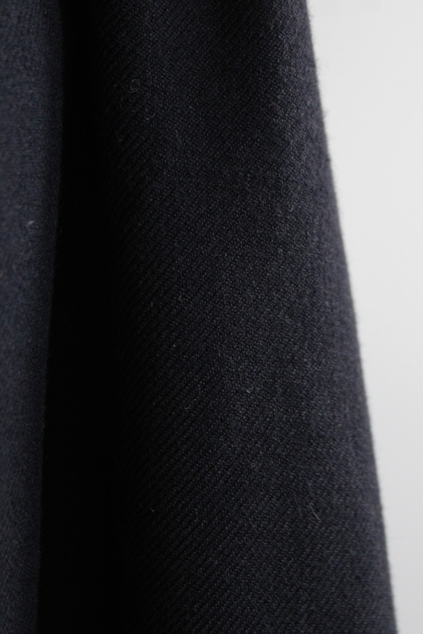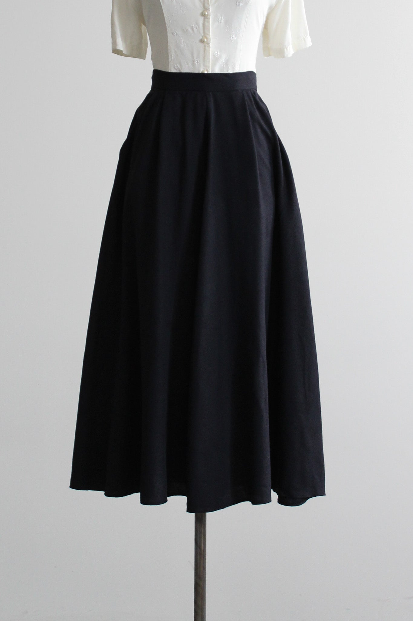 features of note: flared shape / pockets at the hip / zip and button back closure / rich, deep navy blue color