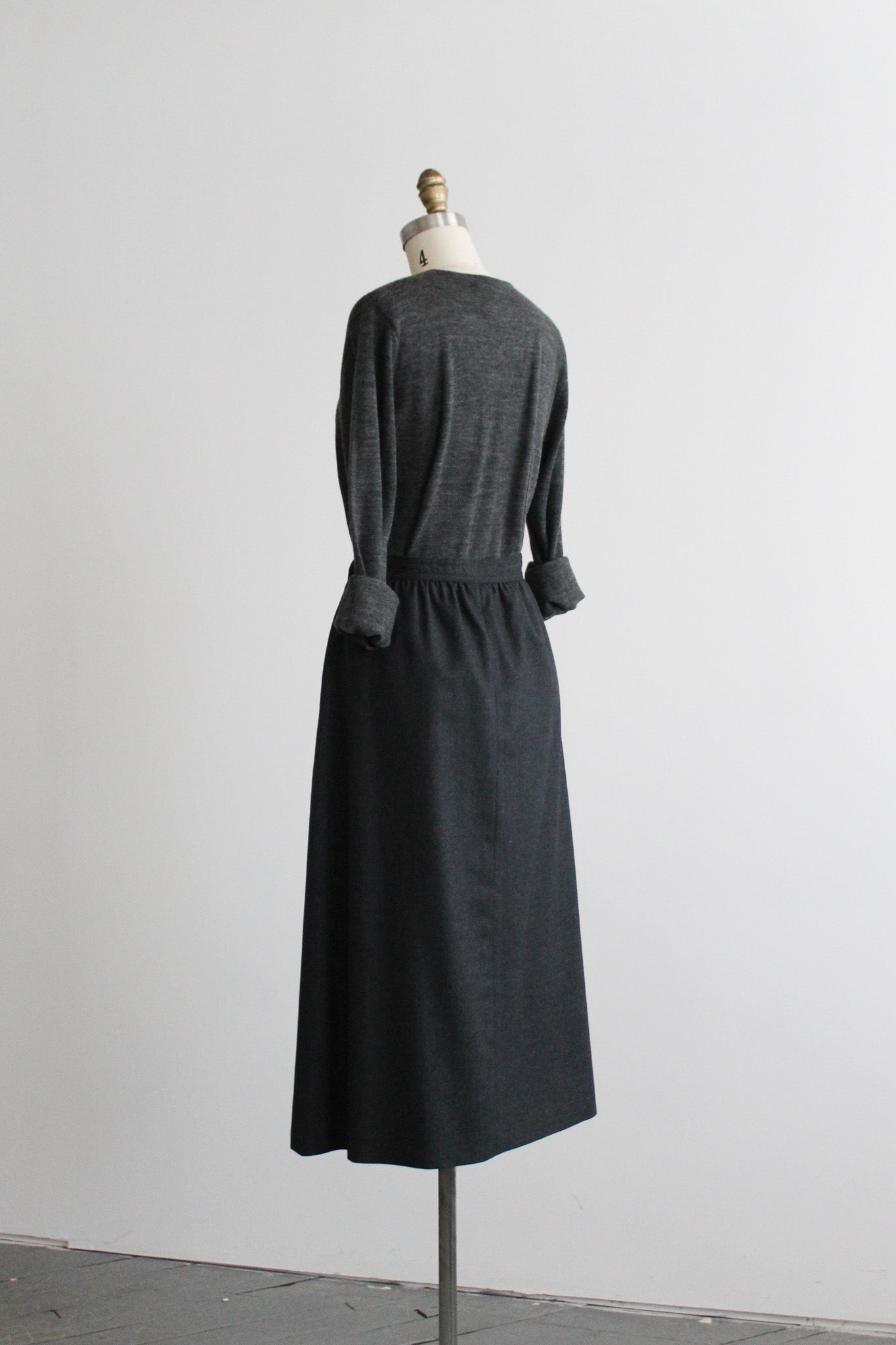 features of note: flared shape / fully lined / side button closure / pockets at the hip