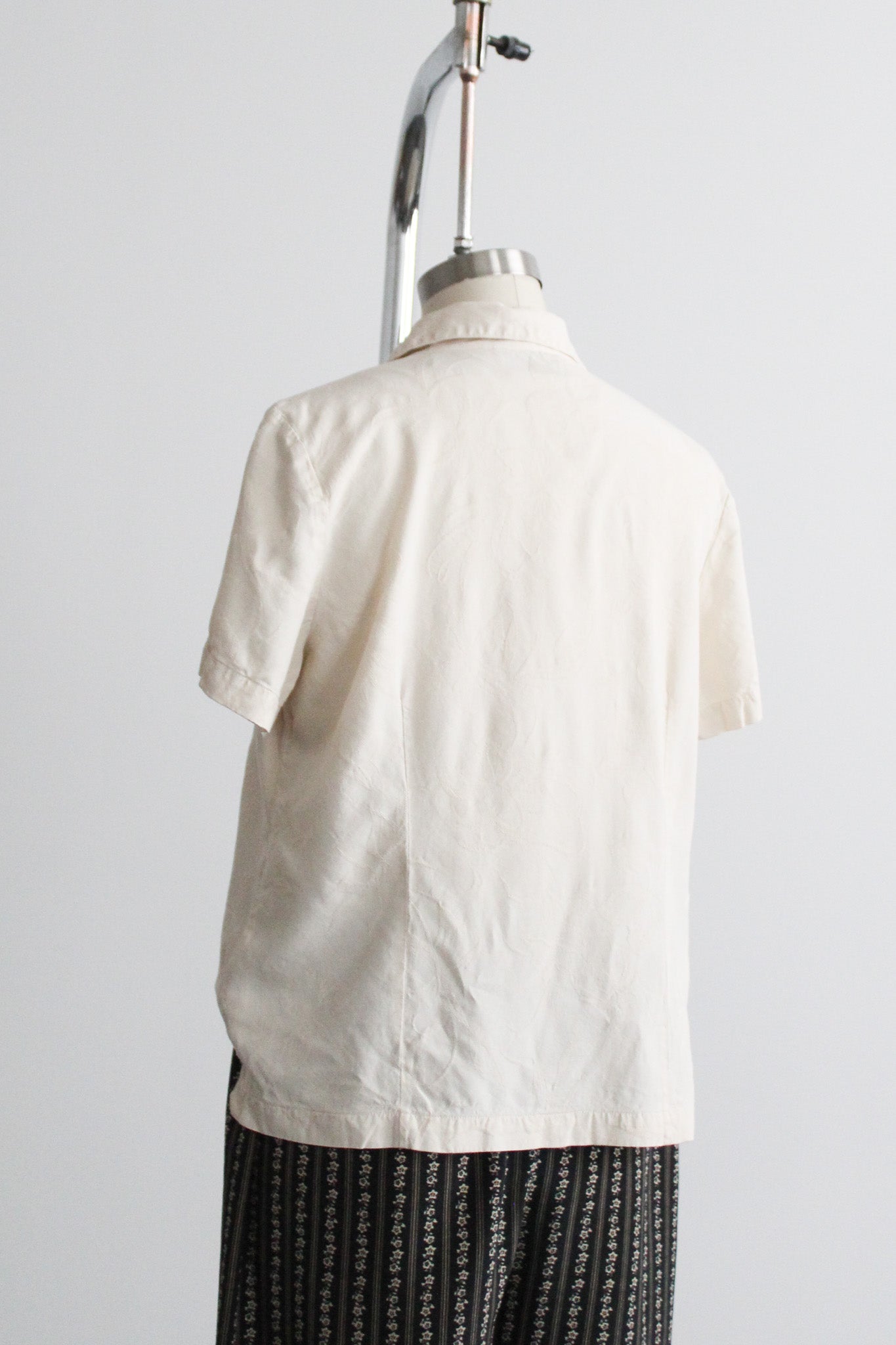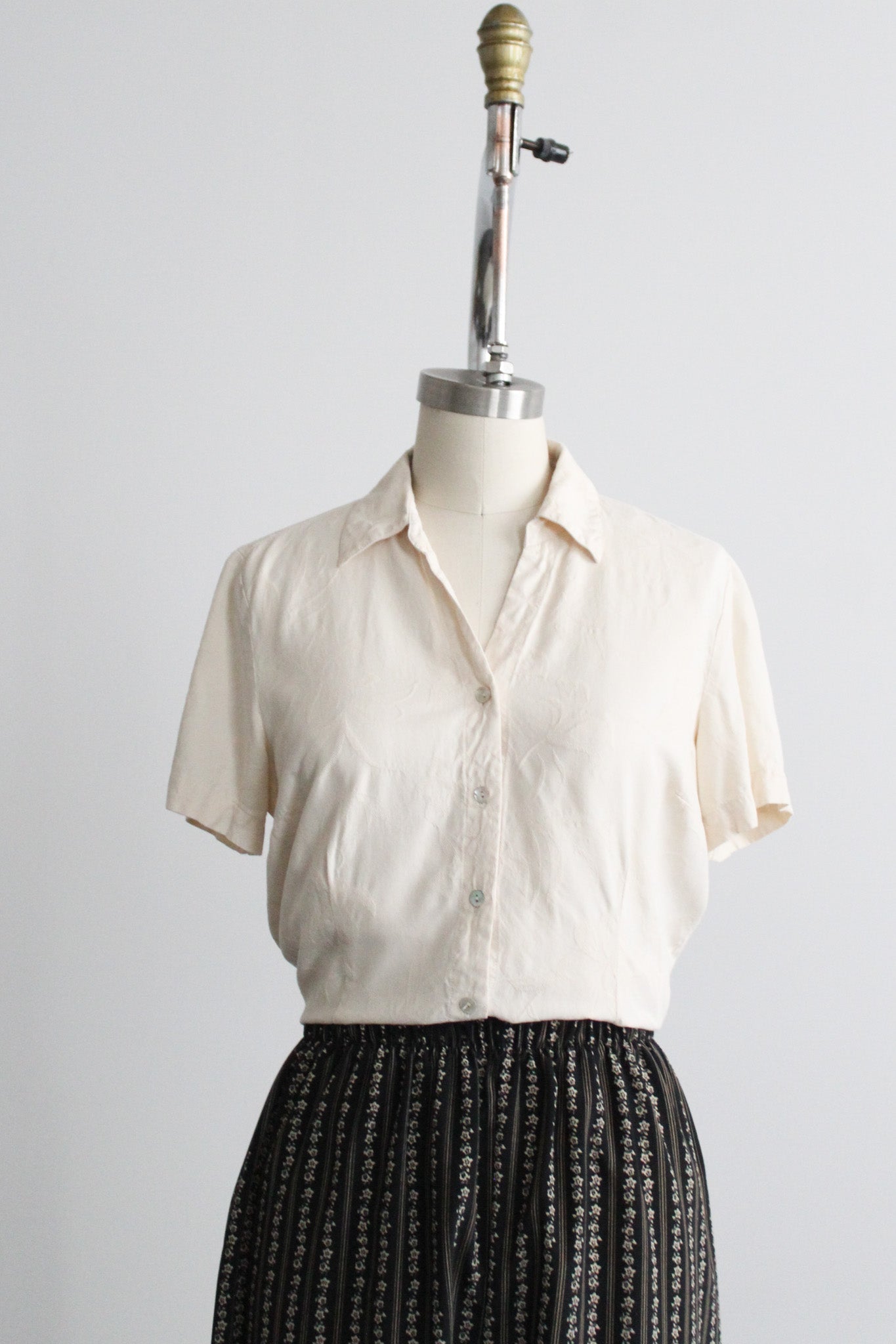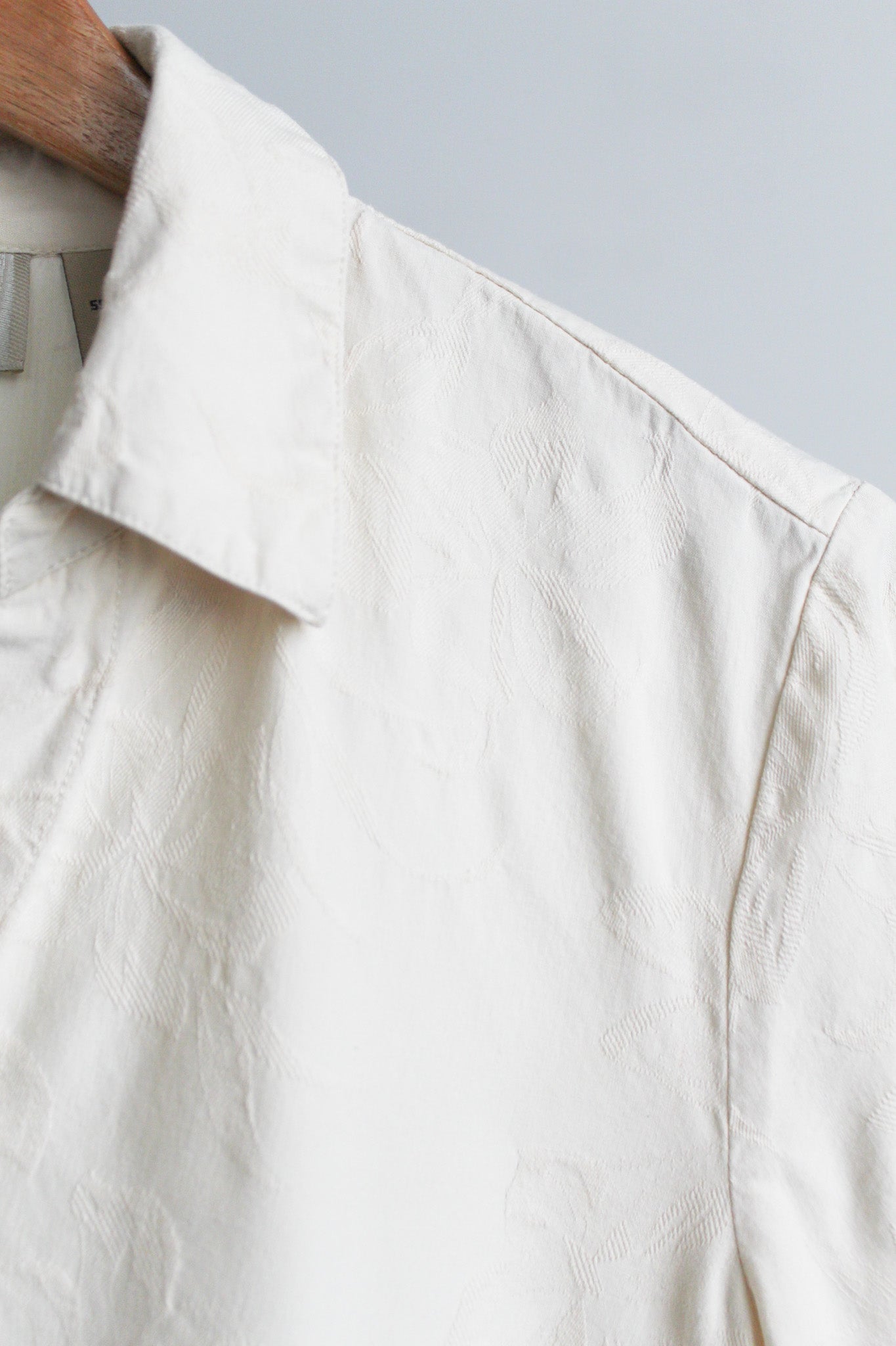 features of note: buttons up the front / embossed floral print