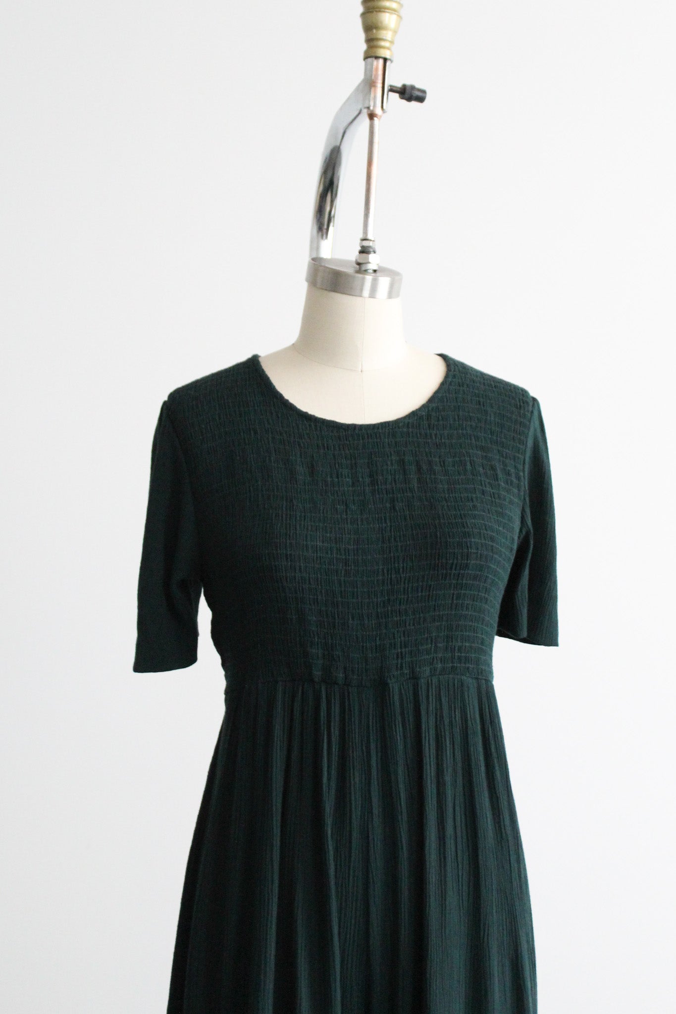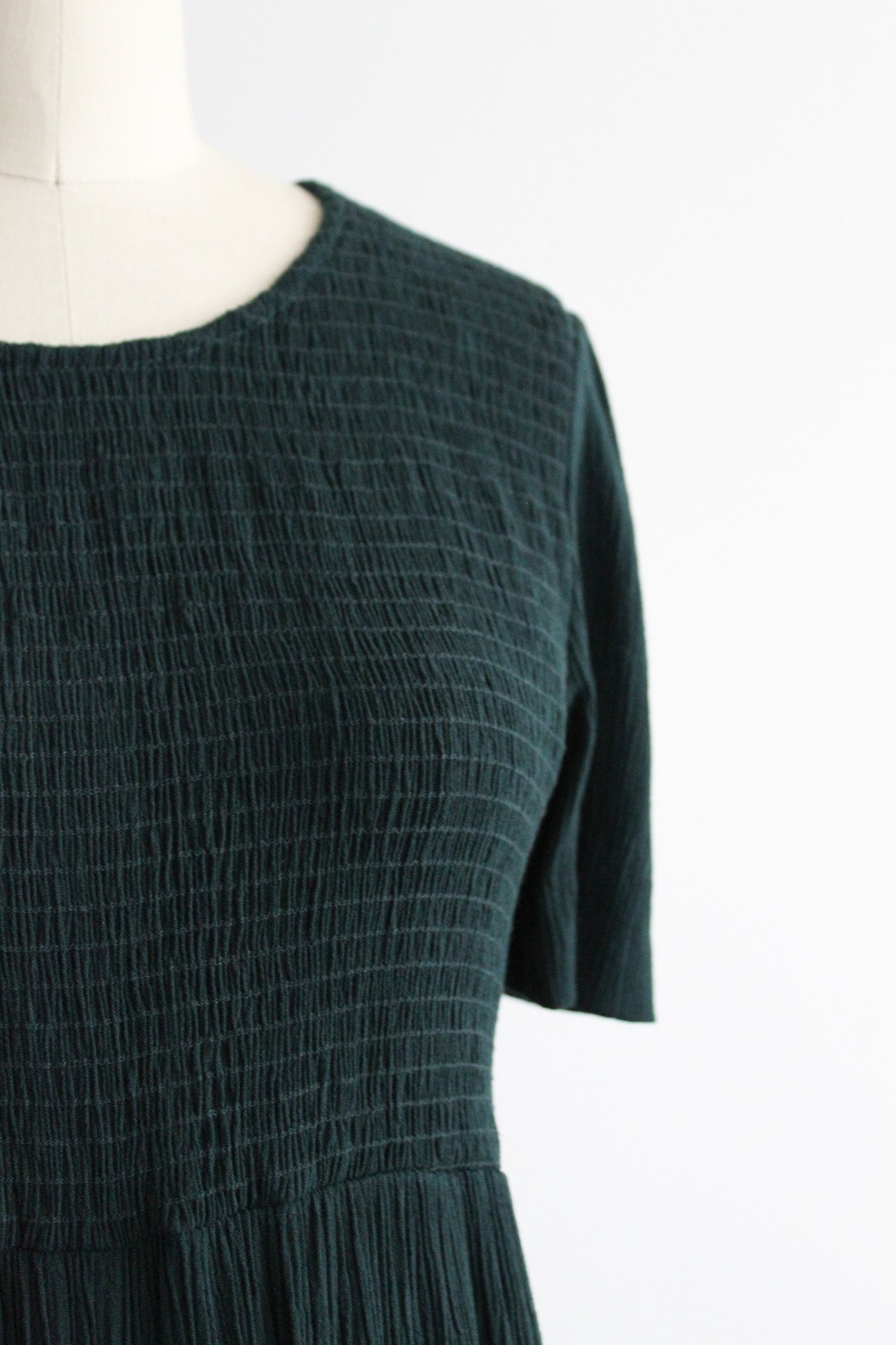 features of note: zip up back / ties at the back of the waistline / smocked bodice